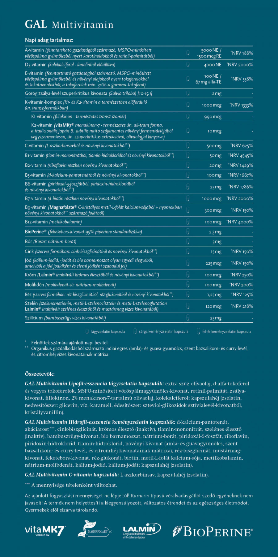 Ez a termékünk a GAL Multivitamin 90 adagos változata, a három "utántöltő" együtt. A GAL Multivitaminról részletesen ide kattintva olvashat!