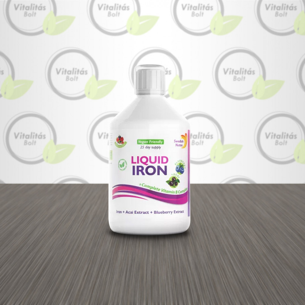 A Swedish Nutra Folyékony Vas a vas nyomelem és a B-vitaminok egyedülálló keverékét tartalmazza, amely támogatja a vörösvértestek életképességét és képződését.