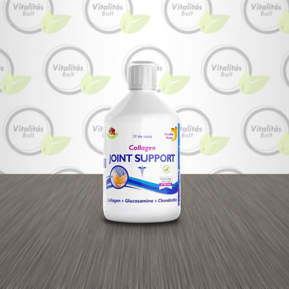 A kollagén a kötőszövetek fő alkotóeleme és az életkor előrehaladtával egyre kevesebb termelődik belőle, ami számos negatív egészségügyi következménnyel járhat. Többek között porckopással és ízületi fájdalommal. A Swedish Nutra Joint Support tartalmaz a glikozaminoglikán előállításához elengedhetetlen glükozamint, amely a porc- és egyéb testszövetek képződéséhez és regenációjához szükséges. Kondroitin-szulfát tartalma segít a porcnövekedés stimulációjában, a degeneratív folyamatok lassításában, valamint gyulladáscsökkentő és fájdalomcsillapító hatású. Rendkívüli hatékony tápanyagai egymást támogatva gondoskodnak a csontok, porcok, inak és izmok egészségéről. Az ízületvédő folyékony kollagén ráadásul bővelkedik többféle esszenciális aminosavban, melyek nélkülözhetetlenek az inak és ízületek egészségének megőrzése szempontjából.