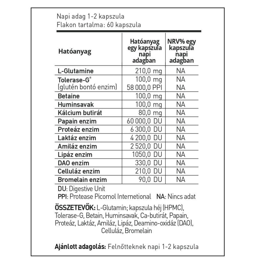 A Hymato GluteNO nem csupán a gluténra fókuszál: az egyéb emésztőenzimek gondoskodnak arról, hogy az étkezések zökkenőmentesen váljanak élvezetté, és támogassák a szervezet optimális tápanyag-felszívódását. Legyen szó akár egy üzleti vacsoráról, baráti összejövetelről vagy egy gyors, mindennapi étkezésről, a Hymato GluteNO segít fenntartani az Ön komfortérzetét.