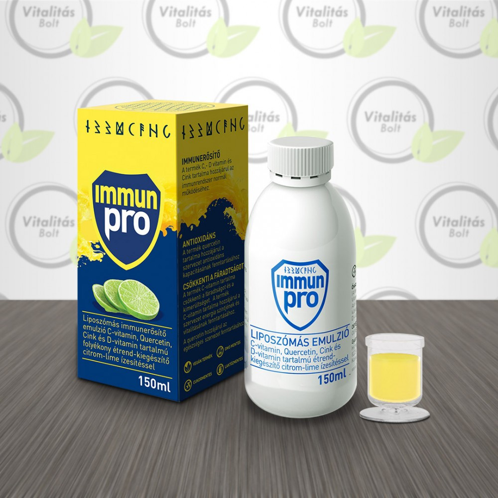 ImmunPro Liposzómás Emulzió - C-vitamin, Quercetin, Cink és D-vitamin tartalmú étrend-kiegészítő citrom-lime ízesítéssel.